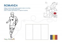 Maglia della Romania da colorare Un disegno da stampare e colorare durante gli Europei di calcio: un calciatore con la maglia della nazionale rumena, la bandiera e una piccola mappa per imparare dov’è la Romania. DISEGNO DA STAMPARE Clicca sul disegno per stamparlo: