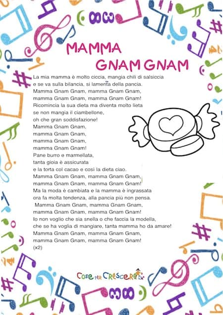 Mamma gnam gnam è una canzone tenera, allegra e divertente da dedicare a una mamma alle prese con la dieta perché anche con qualche chilo in più, la mamma è sempre la più bella! Una canzone scritta da Simona Vezzuto (testo) e Carlo Rossetti (musica).
