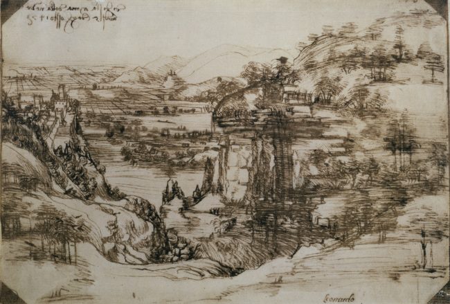 C’è un disegno di Leonardo, datato 5 agosto 1473 e conosciuto come 8P, che è stato studiato e analizzato dagli esperti a Firenze e[ppw id=”125865722″ description=”maggio 2019″ price=”0″] riporta disegni anche sul retro dell’opera e due scritte calligrafiche (scrivere in maniera elegante). Secondo gli esperti entrambe le scritte sono state vergate da Leonardo ma mentre per una, tracciata con la celebre scrittura a specchio, cioè alla rovescia da destra verso sinistra, l’artista usò la mano mancina, per l’altra usò la destra, scrivendo in modo tradizionale.