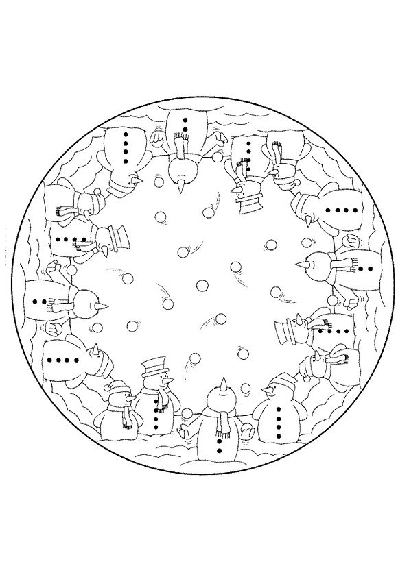 Un bel mandala sull’inverno per bambini da stampare gratuitamente e da colorare. Un mandala semplice e quindi adatto anche ai bambini che frequentano la scuola dell’infanzia o a quelli delle prime classi della scuola primaria. Un mandala con tanti pupazzi di neve che guardano altrettante palle di neve che vanno in tutte le direzioni!