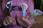 - Arrotolare ogni personaggio ed incollarlo in modo da formare un piccolo tubo nel quale infilare un ditino.