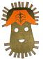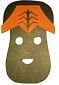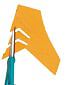 - Piegate il foglio arancione in due, appoggiate il modello sul foglio, facendo corrispondere la linea di piegatura con la linea tratteggiata. Riprodurre il modello e ritagliarlo seguendo le linee di contorno.