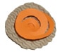 - Ritagliare i cerchi arancione a forma di spirale ed incollarli sui cerchi di carta marrone, per fare le orecchie della maschera. Tirare leggermente sulle estremità delle spirali per staccarle dalla base e dare un effetto molla.