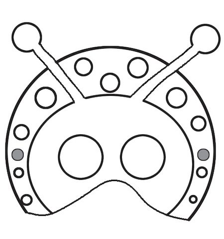 Clicca sull’immagine per scaricare il file della maschera di coccinella da stampare e colorare. Stampala su un foglio A4 o su cartoncino (meglio) per maggiore resistenza.