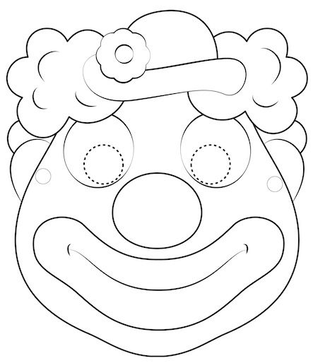 Se il bambino preferisce una maschera già colorata, clicca su Maschera da pagliaccio da stampare!