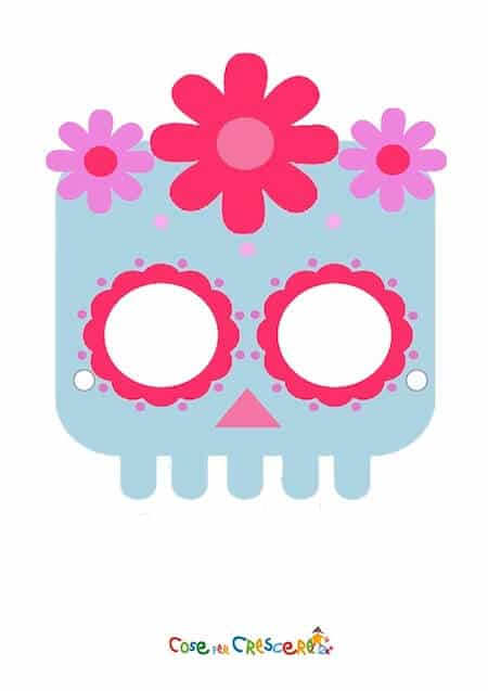 Una maschera di teschio messicano per bambini, pronta da stampare, ritagliare e assemblare facilmente. Per chi invece preferisce dare libero sfogo alla propria fantasia, proponiamo anche la versione della maschera da teschio messicano da colorare, sempre da stampare gratuitamente.