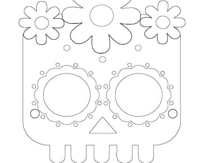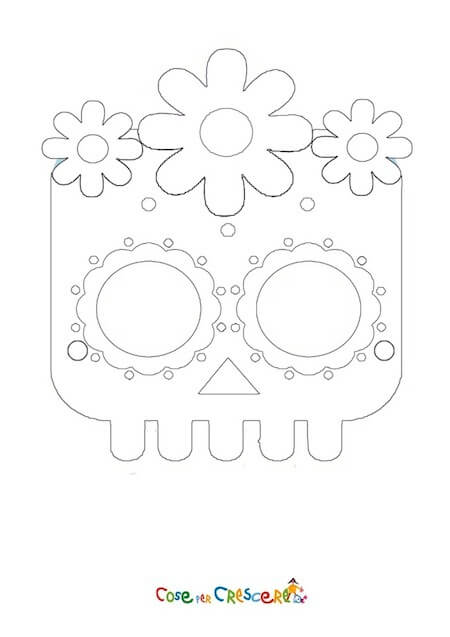 Una maschera di teschio messicano da colorare e a misura di bambino. Un’idea di per un vestito di Halloween fai da te, facile da fare e perfettamente a tema!