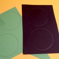 - Con il compasso, disegnare 2 cerchi di circa 6 cm di diametro su ogni foglio colorato (4 cerchi). Ritagliarli.