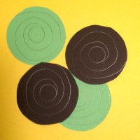 - Incollare le spirali nere su quelle verdi, cercando di sfasarle leggermente.
