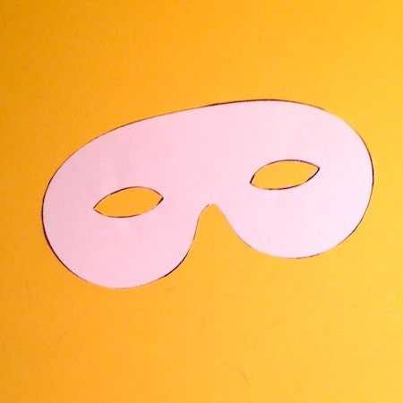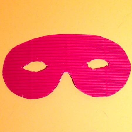 - Con la punta delle forbici, fare un piccolo buco su entrambi i lati della maschera. Infilare il filo elastico trasparente, fissarlo annodandolo. Servirà per indossare la maschera!
