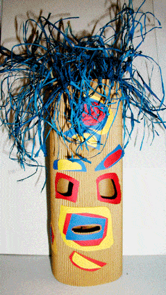 - Ritagliare forme irregolari e di diversi colori ed incollarle una sopra l’altra. Incollarle sulla bocca, sulla facciata della maschera. Ritagliare la sagoma della bocca.