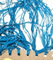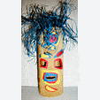 - Tagliare pezzi di filo di rafia da 20 a 30 cm di lunghezza ed annodarli a gruppi di tre. Infilarli nei buchi fatti sulla testa della maschera e bloccarli con un secondo nodo.