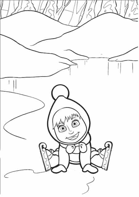 Masha con i pattini Un disegno di Masha da stampare e colorare. La piccola Masha sempre vivace ha fatto un bel capitombolo sul ghiaccio! DISEGNO DA STAMPARE Clicca sul disegno per stamparlo:
