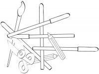 Matite, pennelli e forbici da colorare Disegno di materiale scolastico da stampare e colorare per tutti i bambini che vogliono divertirsi pensando al primo giorno di scuola e a tutto quello che devono preparare e mettere nell’astuccio! Cliccare sul disegno per stamparlo: