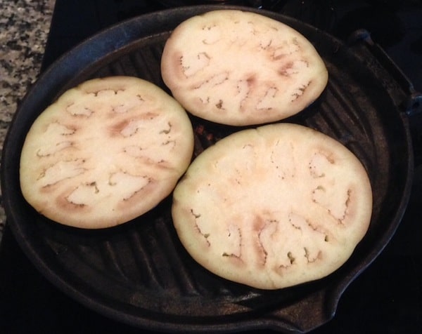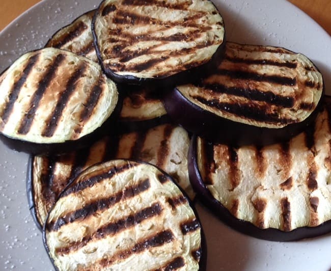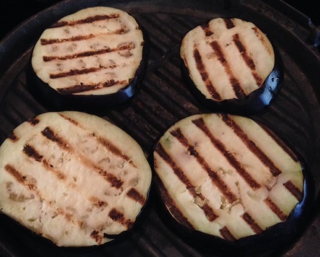 - Lavate le melanzane, spuntatele e tagliatele a fette (circa 1 cm di spessore). Fate scaldare una piastra per griglia o antiaderente e grigliate le melanzane su ambedue i lati.