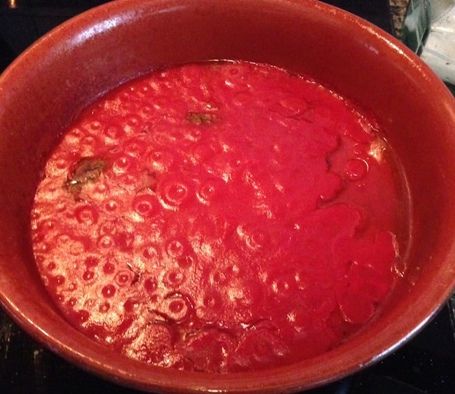 - Preparate un sugo di pomodoro semplice: fate soffriggere lo spicchio d’aglio in 3 cucchiai d’olio, aggiungete la passata di pomodoro e lasciate cuocere fino a quando il sugo risulterà sufficientemente denso. Salate il giusto e aggiungete qualche foglia di basilico fresco. Spegnete il fuoco e mettete il sugo da parte.