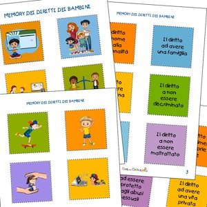 Un gioco del Memory per imparare e memorizzare quali sono i 10 diritti fondamentali della Convenzione sui Diritti dell’infanzia e dell’adolescenza: il Memory dei Diritti dei bambini. L’obiettivo del gioco è molto semplice! Bisogna formare delle coppie di carte con il disegno e il diritto dei bambini corrispondente.