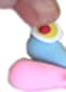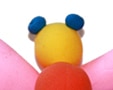Modellare due piccole palline blu e incollarle sulla testa della farfalla (pallina gialla).