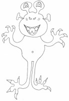 Disegno di un mostro molto buffo, con due occhi stranissimi, da stampare e colorare. Di che colore può essere? Verde, giallo, arancione, rosa… a voi la scelta!
