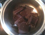 - Mettete il cioccolato a pezzi in una casseruola, aggiungete 2 cucchiai d’acqua e fate scaldare a fuoco dolce, mescolando continuamente con un cucchiaio di legno per fare sciogliere il cioccolato.
