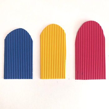 - Ritaglia 3 rettangoli di circa 5,5 cm x 8/10 cm in 3 cartoncini di colori diversi. Arrotonda un lato (disegna e poi ritaglia).