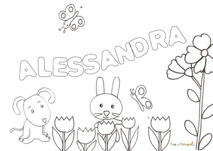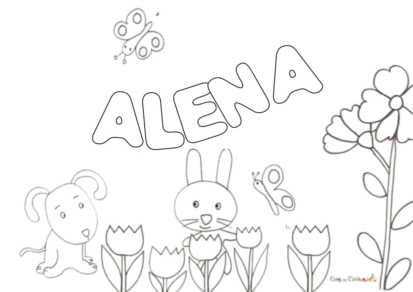 Disegno del nome ALENA pronto da stampare e da dare alla vostra bimba da colorare, per divertirsi con il proprio nome ed impararne i caratteri.