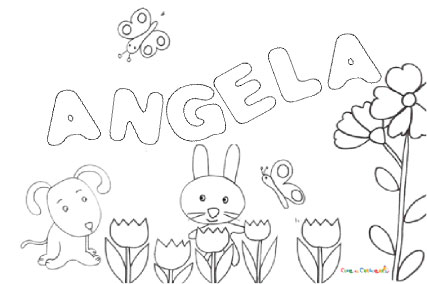 Disegno del nome ANGELA pronto da stampare e da dare alla vostra bimba da colorare, per divertirsi con il proprio nome ed impararne i caratteri.