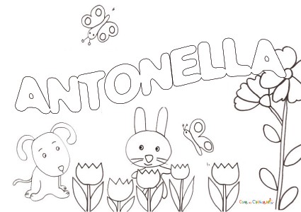 Disegno del nome ANTONELLA pronto da stampare e da dare alla vostra bimba da colorare, per divertirsi con il proprio nome ed impararne i caratteri.