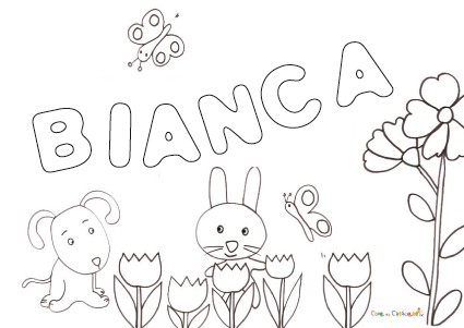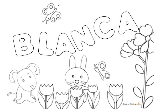 Disegno del nome BLANCA pronto da stampare e da dare alla vostra bimba da colorare, per divertirsi con il proprio nome ed impararne i caratteri.