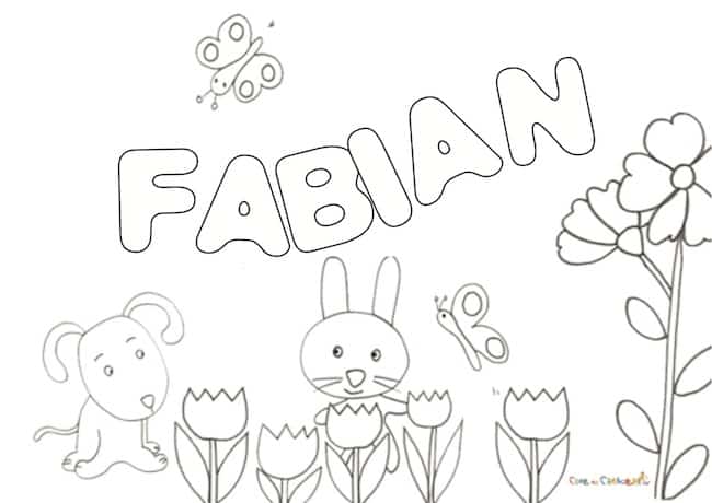 Disegno del nome FABIANA pronto da stampare e da dare alla vostra bimba da colorare, per divertirsi con il proprio nome ed impararne i caratteri.