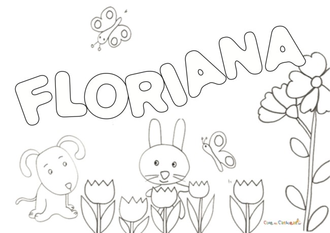 Disegno del nome FLORIANA pronto da stampare e da dare alla vostra bimba da colorare, per divertirsi con il proprio nome ed impararne i caratteri.