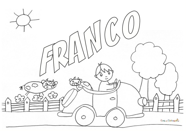 Disegno del nome FRANCO pronto da stampare e da dare al vostro bimbo da colorare, per divertirsi con il proprio nome ed impararne i caratteri.