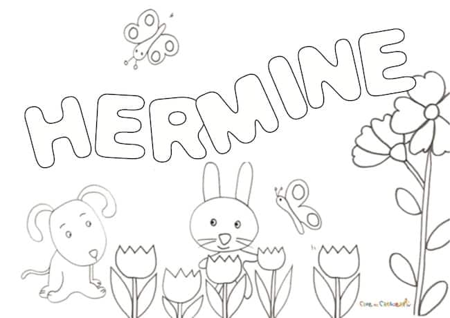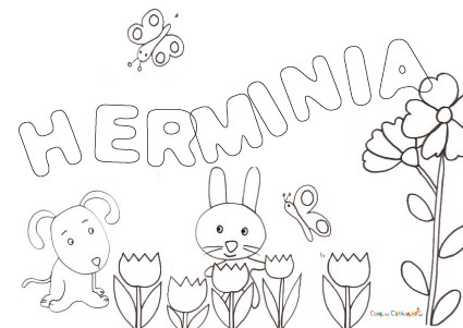 Disegno del nome HERMINIA pronto da stampare e da dare alla vostra bimba da colorare, per divertirsi con il proprio nome ed impararne i caratteri.
