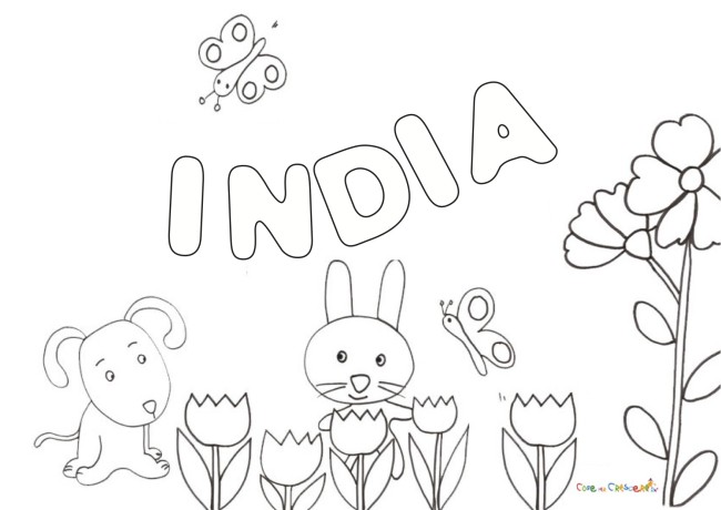 Disegno del nome INDIA pronto da stampare e da dare alla vostra bimba da colorare, per divertirsi con il proprio nome ed impararne i caratteri.