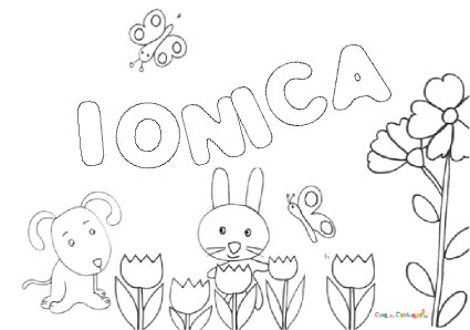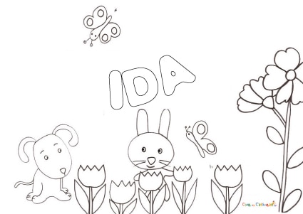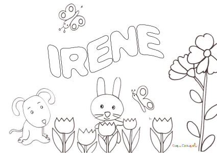 Disegno del nome IRENE pronto da stampare e da dare alla vostra bimba da colorare, per divertirsi con il proprio nome ed impararne i caratteri.