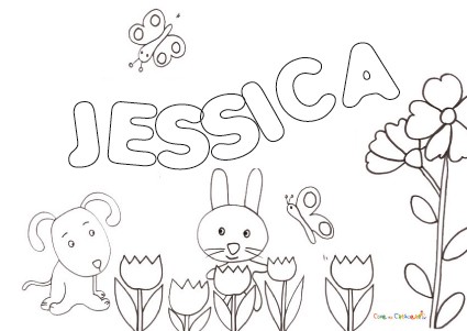 Disegno del nome JESSICA pronto da stampare e da dare alla vostra bimba da colorare, per divertirsi con il proprio nome ed impararne i caratteri.