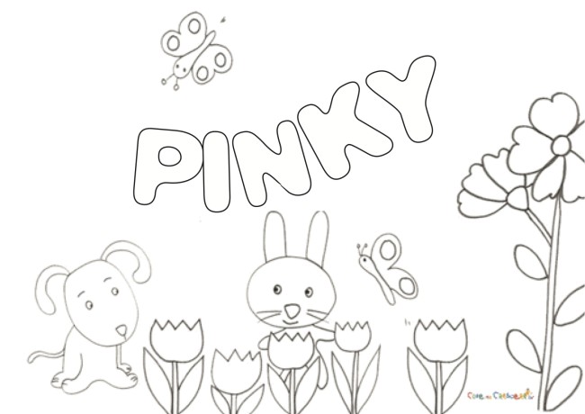 Disegno del nome PINKY pronto da stampare e da dare alla vostra bimba da colorare, per divertirsi con il proprio nome ed impararne i caratteri.