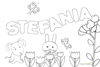 Disegno del nome STEFANIA pronto da stampare e da dare alla vostra bimba da colorare, per divertirsi con il proprio nome ed impararne i caratteri.