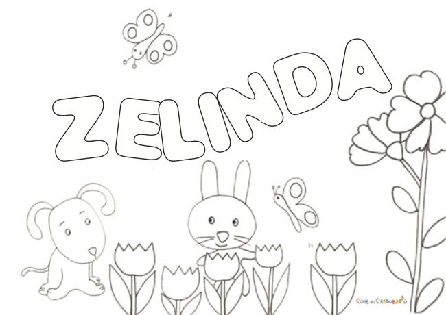 Disegno del nome ZELINDA pronto da stampare e da dare alla vostra bimba da colorare, per divertirsi con il proprio nome ed impararne i caratteri.