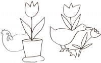 Oche e tulipani da colorare Un bel disegno con un’oca e una gallina con magnifici tulipani da colorare. Cliccare sul disegno per stamparlo: