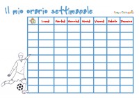 Un orario settimanale da stampare, per tutti i maschietti appassionati di calcio che potranno colorare il giocatore con i colori della loro squadra del cuore ed inserire nel calendario settimanale, oltre agli orari della scuola, quelli legati alla loro passione!