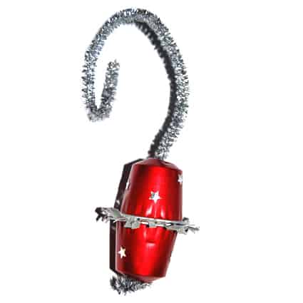 - Incollare delle stelline o dei brillantini sulle capsule. Dare la forma di un piccolo gancio all’altra estremità dello scovolino prima di appendere la pallina all’albero.