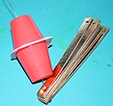 - Infilare il filo metallico nel secondo buco di tutte le strisce.