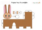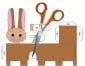 - Ritagliare tutte le parti del paper toy coniglio, seguendo le linee di contorno nere. Attenzione a non ritagliare le linee tratteggiate e le linguette! Ci sono 4 elementi da ritagliare: la testa, il corpo, la coda ed una forma rettangolare che diventerà il collo del coniglio.