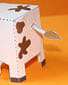 - Ritagliare tutti gli elementi del paper toy mucca, seguendo le linee di contorno nere. Attenzione a non eliminare le linguette durante il ritaglio.