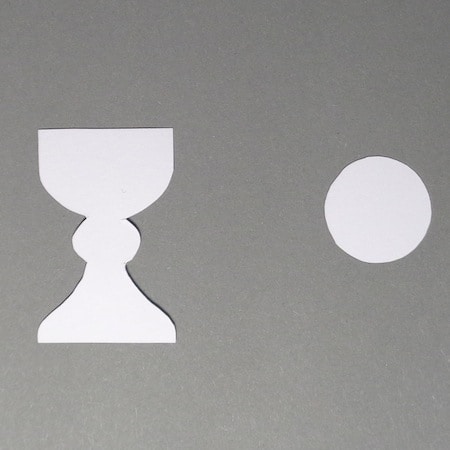 - Incollare il calice e l’ostia sulla striscia colorata. Scrivere l’invito o la partecipazione all’interno del biglietto.