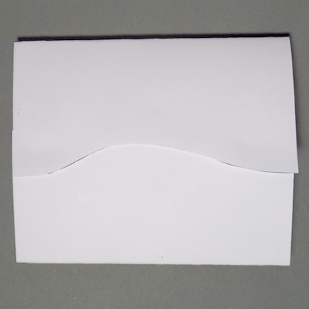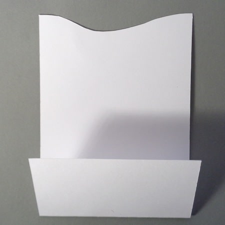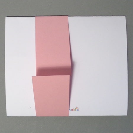 - Piegare il biglietto seguendo i trattini segnati: il primo a 6 cm dalla base (piegare verso l’alto), il secondo a 10 cm dalla prima piegatura (verso il basso).