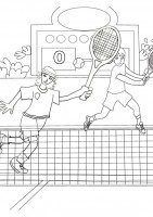 Partita di doppio di tennis da colorare Un disegno da colorare sul tennis: giocatori impegnati in una partita di doppio. Cliccare sul disegno per stamparlo: