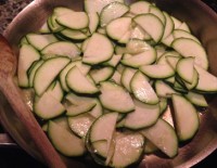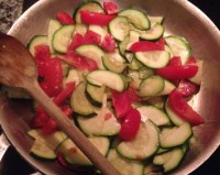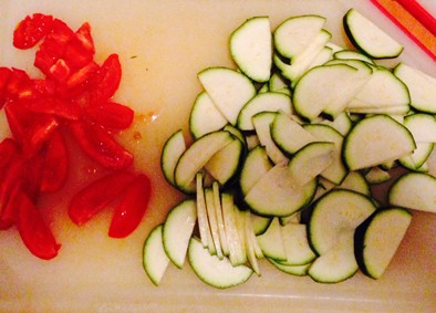 - Lavare e spuntare le zucchine. Affettarle a fette sottili. Lavare e asciugare i pomodorini e tagliarli a fette.