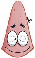 La maschera di Patrick Stella, il migliore amico di SpongeBob. Patrick Stella è una stella marina rosa che vive in una casa con mobili di sabbia. E’ un po’ imbranato, poco affidabile e molto sbadato… Insomma, un grandissimo combina guai con una grande passione per le gelatine di frutta.